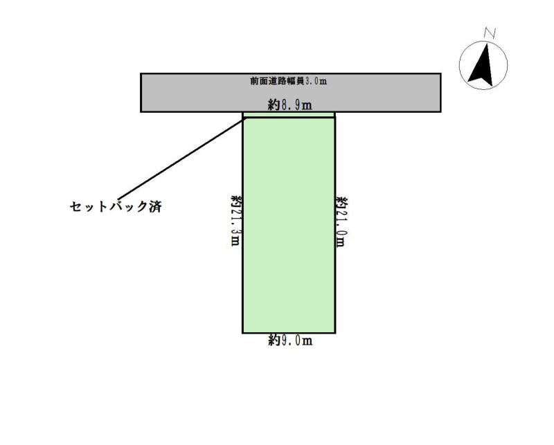 | 現況/引渡し | 更地/相談 | 接道状況 | 接道: 北 8.9m 公道 道路幅: 3m |