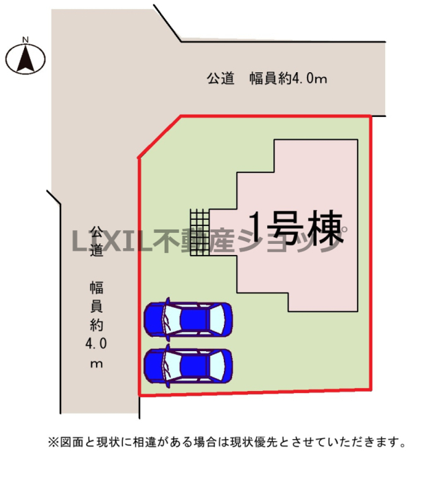 | 接道状況 | 接道: 北 公道 道路幅: 4m 接道: 西 公道 道路幅: 4m |