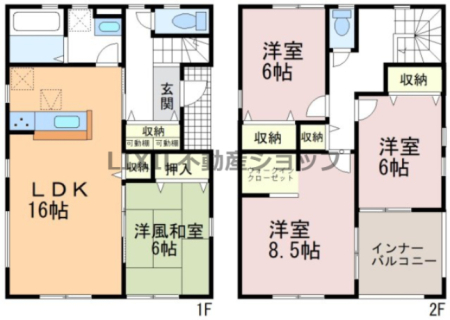 •  【間取り】全室南向き・1階は広いLDKと和室・2階にも納戸や納戸の上には屋根裏収納など充実の収納力がございます。