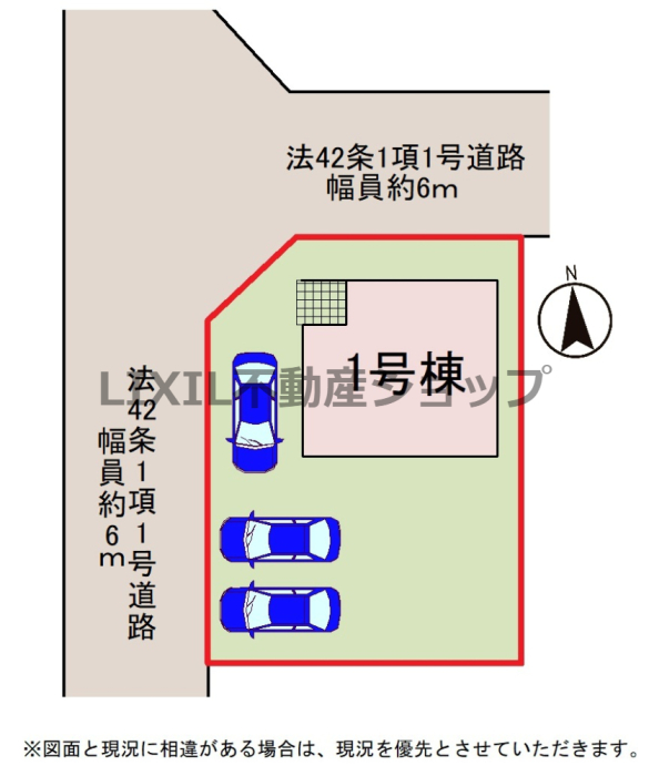 • その他 【区画図】1号棟 圧迫感を感じさせない角地に、土地面積60坪Overの広い敷地にたつ物件です。駐車場3台可能です。