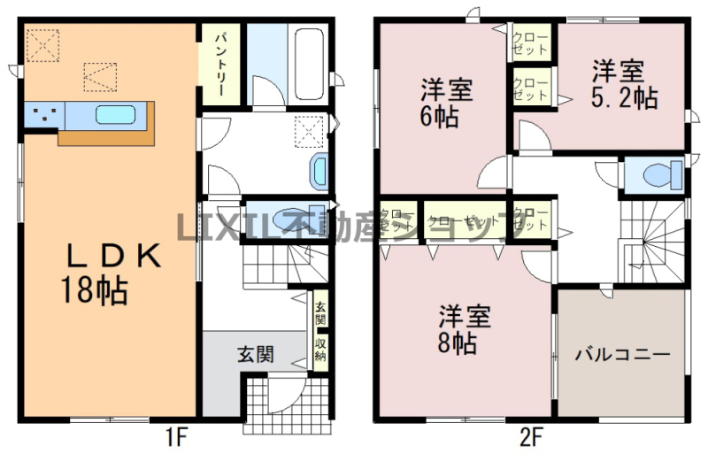 | 築年月 | 2026年3月築 | 間取り | 3LDK (LDK18/洋室8/洋室6/洋室5.2) | ||