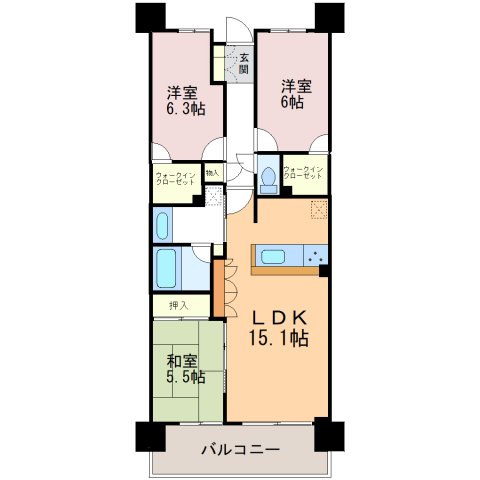 | 間取り | 3LDK (LDK12/和室5.5/洋室6.3/洋室6) | ||||