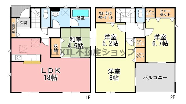 | 築年月 | 2026年4月築 | 間取り | 4LDK (LDK18/和室4.5/洋室8/洋室6.7/洋室5.2) | ||