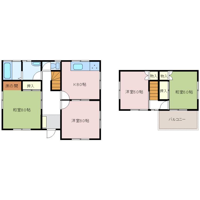 •  全居室6帖以上でゆとりある生活。南側が開けていて、日当たりもバッチリです。