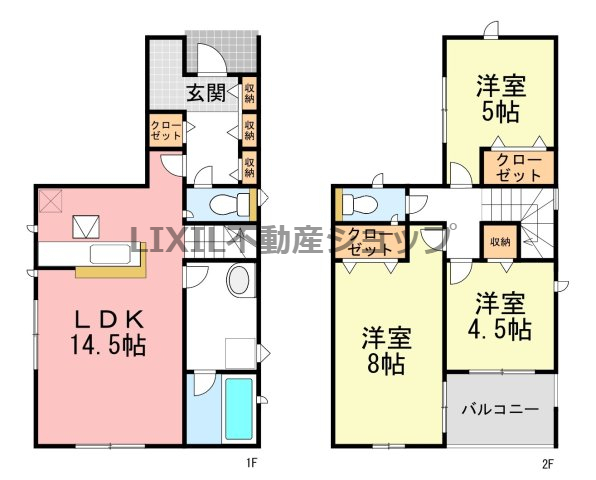 | 築年月 | 2026年6月築 | 間取り | 3LDK (LDK14.5/洋室8/洋室5/洋室4.5) | ||