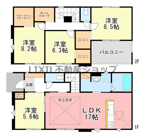| 築年月 | 2026年6月築 | 間取り | 4SLDK (LDK17/洋室5.6/洋室8.5/洋室8.2/洋室6.3/S) | ||