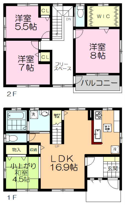 | 築年月 | 2017年1月築 | 間取り | 4LDK (LDK16.9/和室4.5/洋室8/洋室7/洋室5.5) | ||