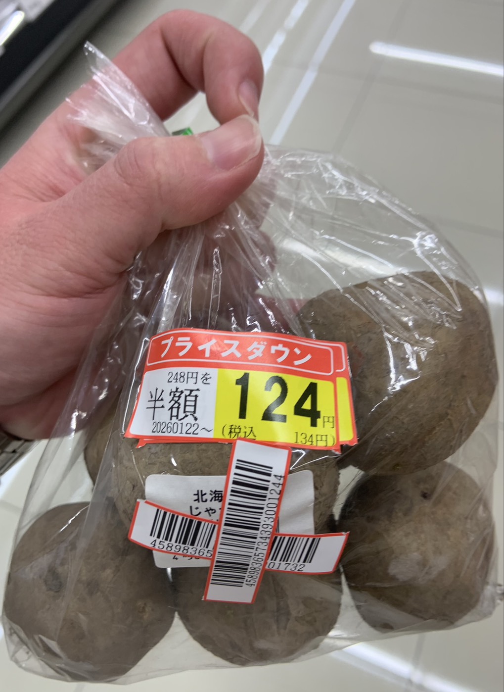 先日、じゃがいも6つで124円のお勤め品を発見しました!