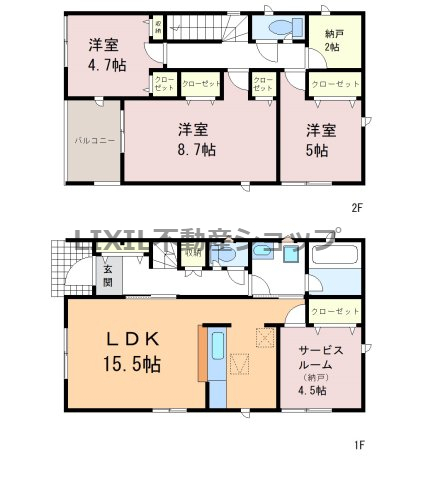 築年月 2025年11月築 間取り 3SLDK (LDK15.5/S4.5/洋室8.7/洋室5/洋室4.7)