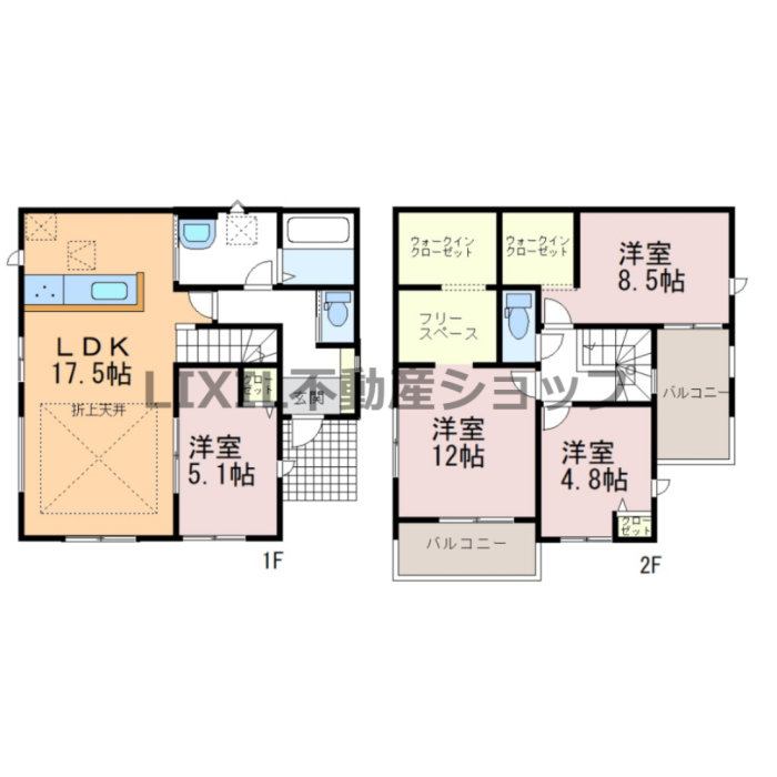 | 築年月 | 2026年1月築 | 間取り | 4LDK (LDK17.5/洋室5.1/洋室12/洋室8.5/洋室4.8) | ||