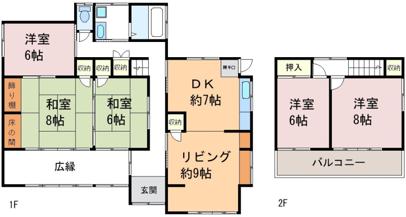 | 採光面 | 東南 | 構造/階数 | 木造/地上2階建 |