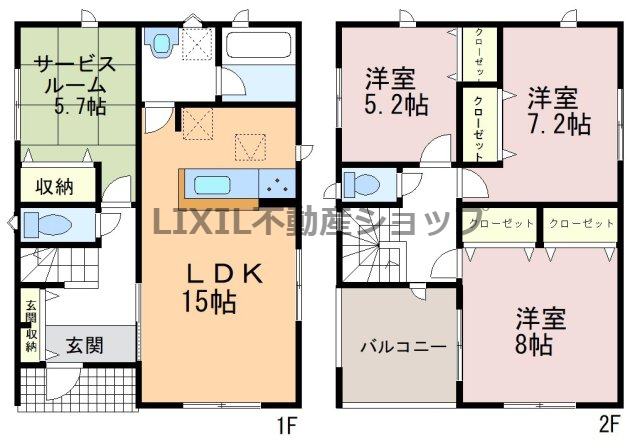 | 築年月 | 2026年1月築 | 間取り | 3SLDK (LDK15/S5.7/洋室8/洋室7.2/洋室5.2) | ||