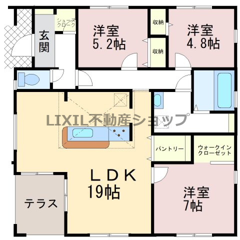 | 築年月 | 2026年5月築 | 間取り | 3LDK (LDK19/洋室5.2/洋室4.8/洋室7) | ||