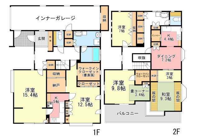 | 築年月 | 1993年10月築 | 間取り | 5SDK (洋室15.4/洋室12.5/K5/S2/洋室7/洋室9.8/和室9.3/D7.2/K4.4) | ||
