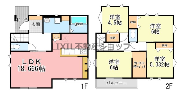 | 築年月 | 2026年6月築 | 間取り | 4LDK (LDK18.6/洋室6/洋室5.3/洋室4.5) | ||