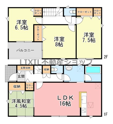 | 築年月 | 2026年7月築 | 間取り | 4LDK (LDK16/和室4.5/洋室8/洋室7.5/洋室6.5) | ||