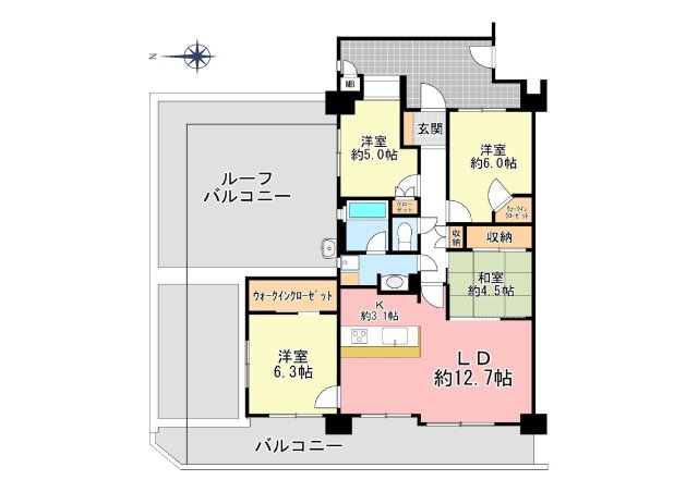 | 間取り | 4LDK (LD12.7/K3.1/洋室6.3/洋室6/洋室5/和室4.5) | ||||